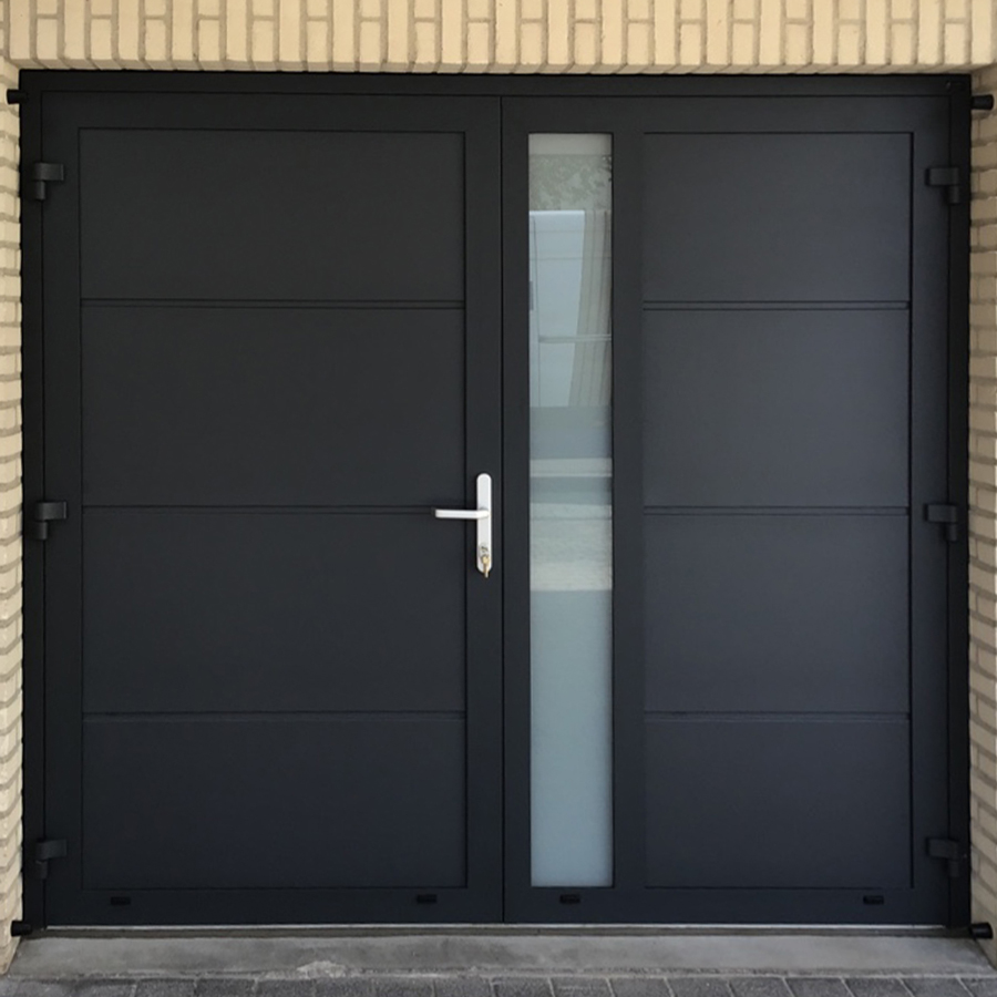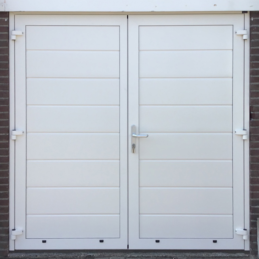 Een garagedeur met loopdeur is een openslaande garagedeur die bestaat uit 2 losse deuren waarvan er één als loopdeur dient. Het voordeel hiervan is dat u niet de hele garagedeur hoeft te openen om naar binnen of buiten te lopen. Het is de perfecte oplossing als u de garage gebruikt om fietsen of andere kleine spullen op te bergen.