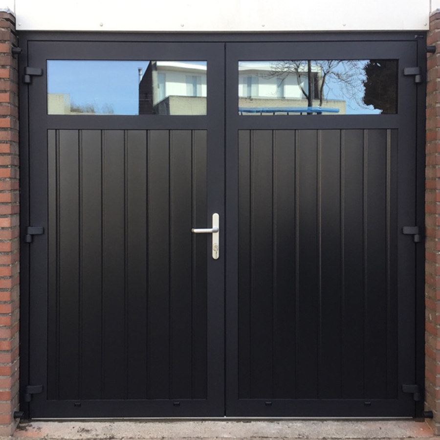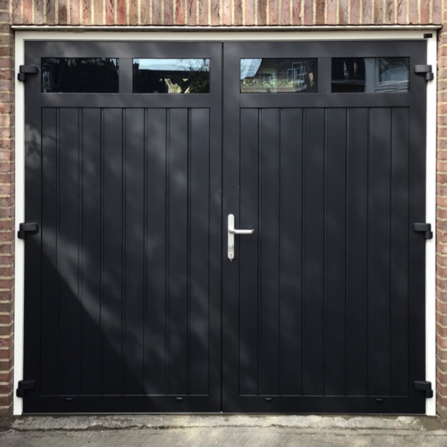 Zwarte openslaande garagedeuren beschikken over een mooie zwarte kleur wat overal bij past, glaswerk en neutraal zwart. Het geeft uw woning een stijlvolle, luxe en moderne uitstraling. Heeft uw woning of bedrijfspand een moderne uitstraling? Kies dan ook voor garagedeur op maat die naadloos aansluit bij uw woning.